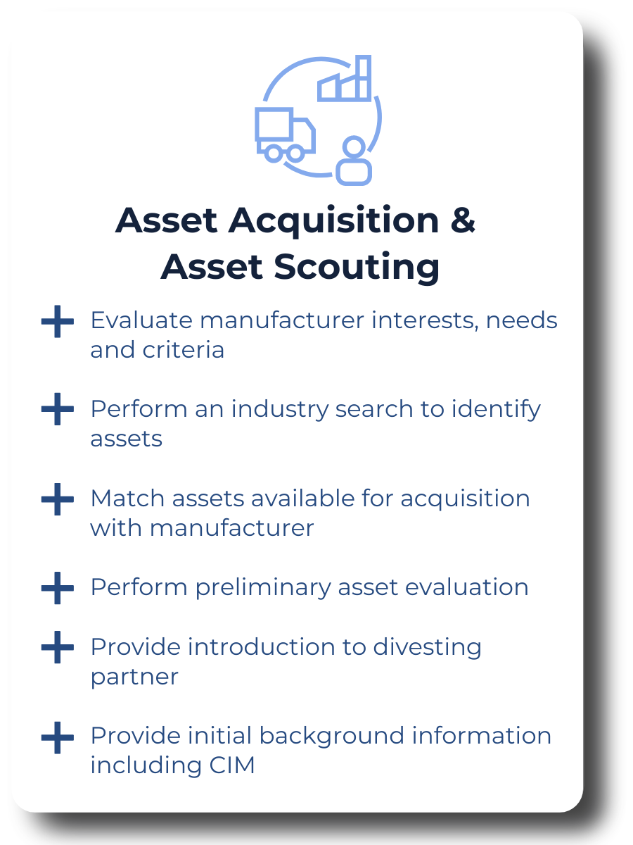 We utilize cutting-edge technology and resources to support our clients’ objectives. Our extensive internal manufacturer product database and broad manufacturer contact network enable us to efficiently identify and evaluate assets available for acquisition. We also employ advanced analytics and data-driven insights to guide our market access strategies, ensuring that our clients are well-positioned for success.